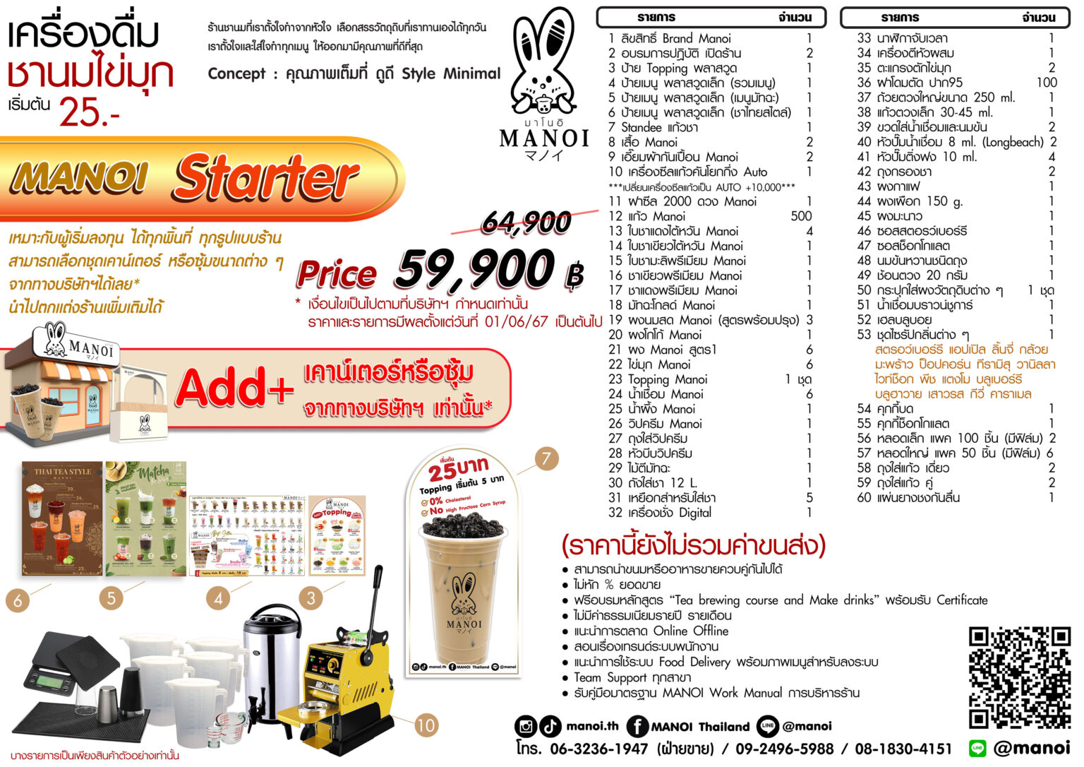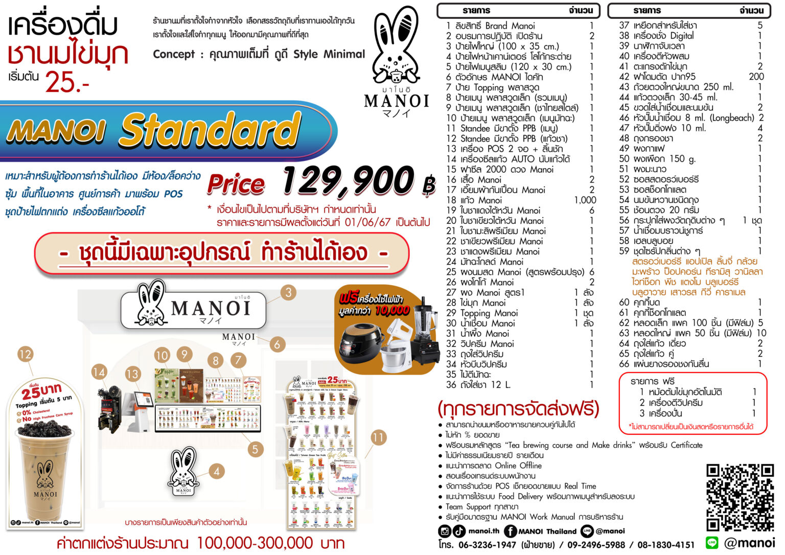 “MANOI” ไม่ใช่แค่แฟรนไชส์ชานมไข่มุกธรรมดา แต่เป็นธุรกิจที่เราทำด้วยใจ ตั้งแต่การออกแบบโลโก้ ดีไซน์ร้าน ไปจนถึงการคัดสรรวัตถุดิบ เรามุ่งมั่นสร้างสรรค์เมนูที่มีคุณภาพและโดดเด่น สะท้อนภาพลักษณ์ร้านในสไตล์ Minimal ด้วยโทนสีขาวสะอาดตา ที่สำคัญคือทุกแก้วของเราไร้ไขมันทรานส์ เราใส่ใจในทุกรายละเอียดเพื่อให้ผู้บริโภคได้สัมผัสกับชานมไข่มุกที่อร่อยและปลอดภัยทุกวัน