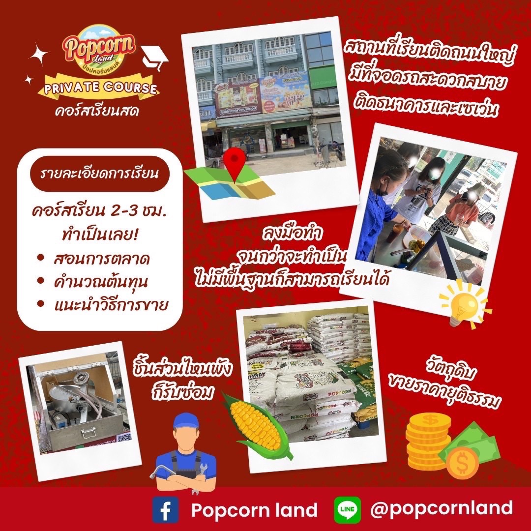 - Facebook : Popcorn land สอนทำป๊อปคอร์น เครื่องทำป๊อปคอร์น เมล็ดข้าวโพดป๊อปคอร์น